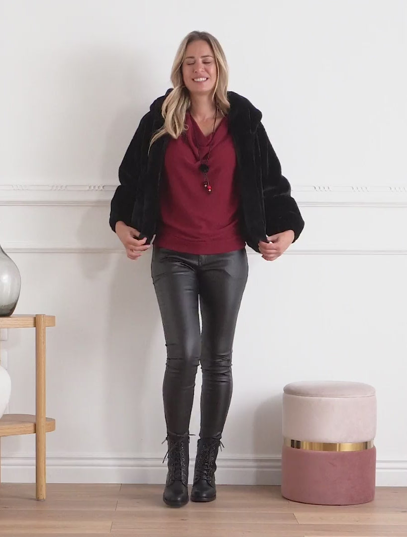 Maglione sottile a tinta unita con collo a cascata - Bordeaux