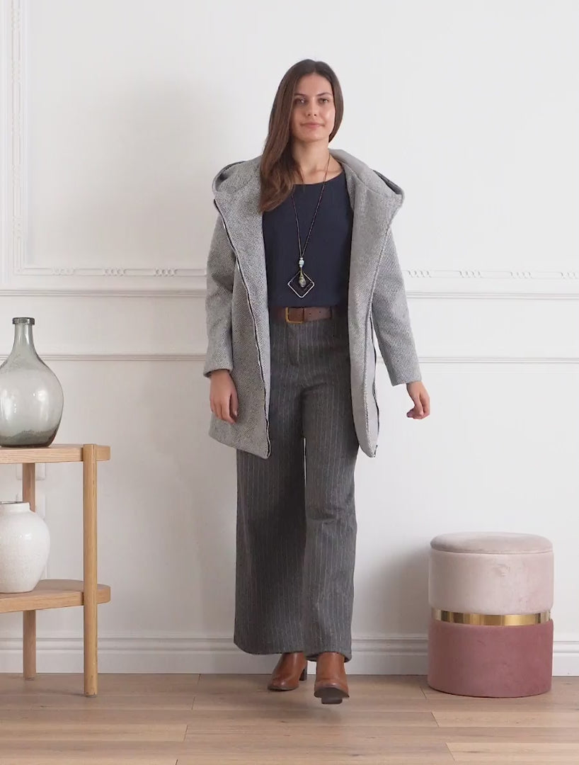 Cappotto con cappuccio e inserti in similpelle - Grigio