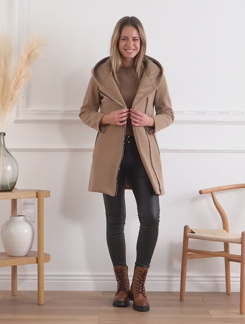 Cappotto con cappuccio e inserti in similpelle - Chameau