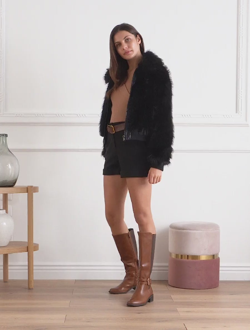 Giubbotto con inserto in pelliccia sintetica. - Nero