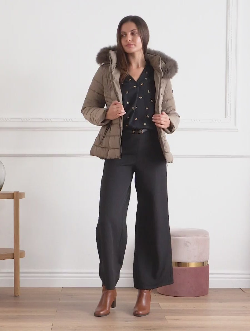 Piumino dritto con cappuccio in pelliccia sintetica. - Talpa