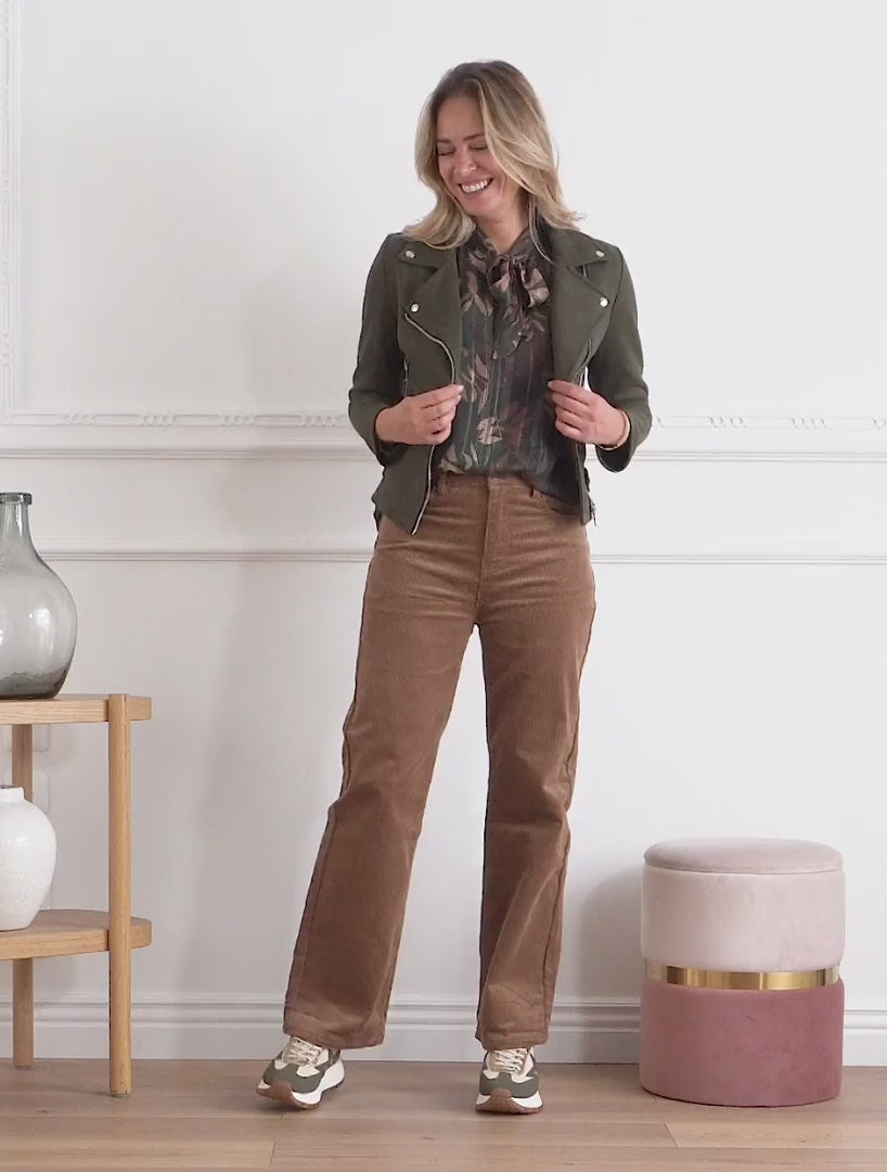 Giacca in suede con chiusura a zip - Cachi