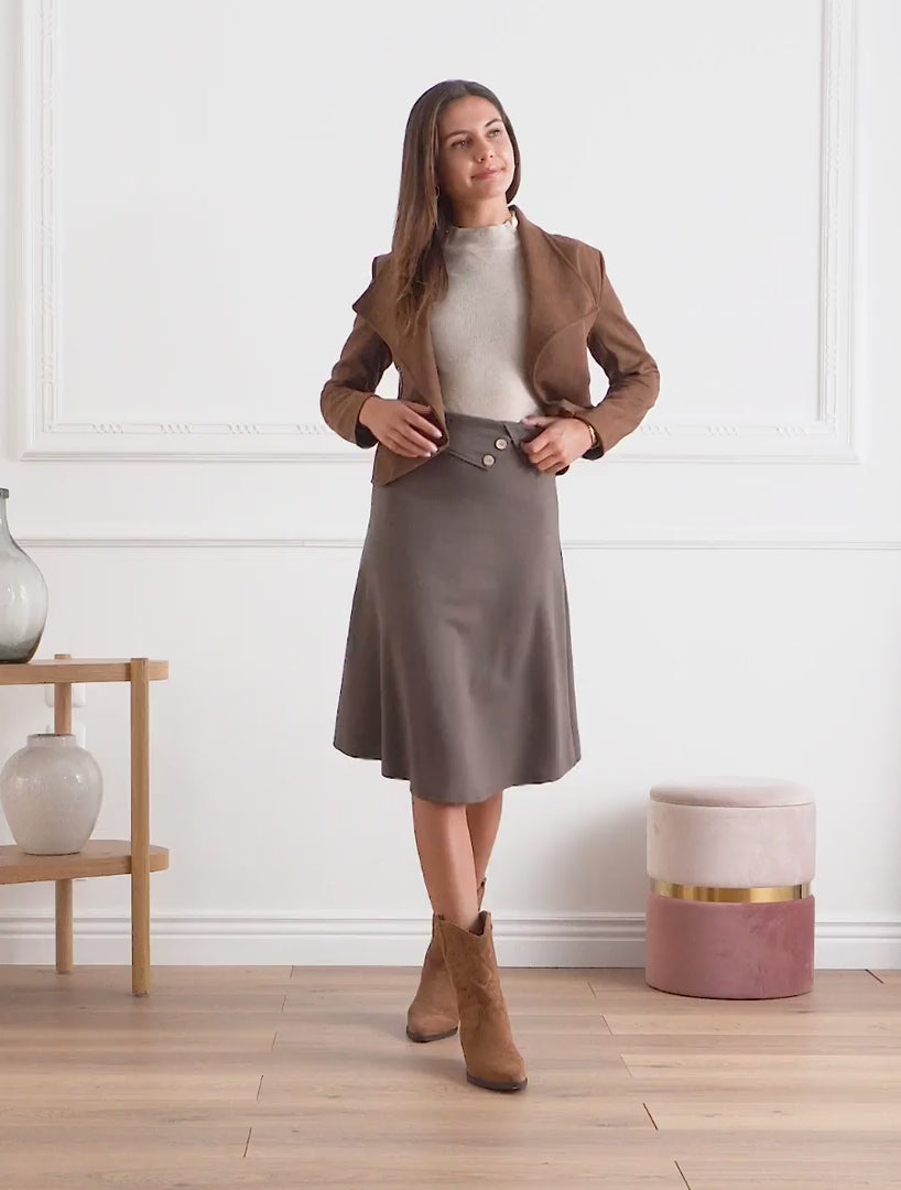 Giacca in camoscio sintetico con tasche decorative con zip - Marrone