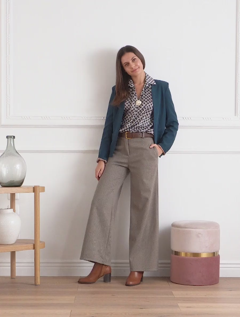 Pantalone ampio stampato a spina di pesce - Beige