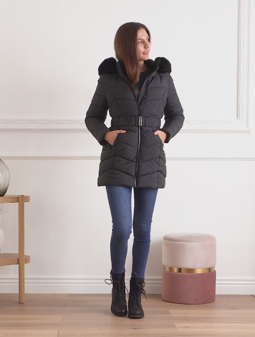 Giubbotto avvitato con cappuccio amovibile - Nero