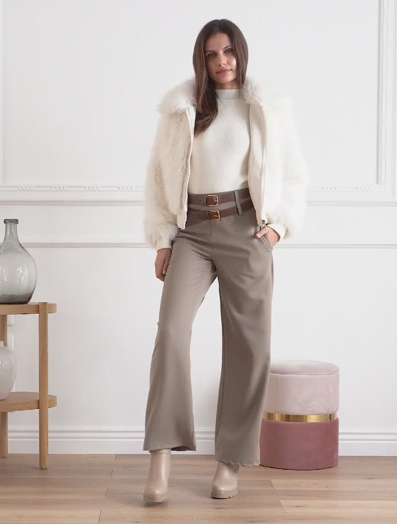 Pantaloni dritti con doppie cinture - Talpa chiaro