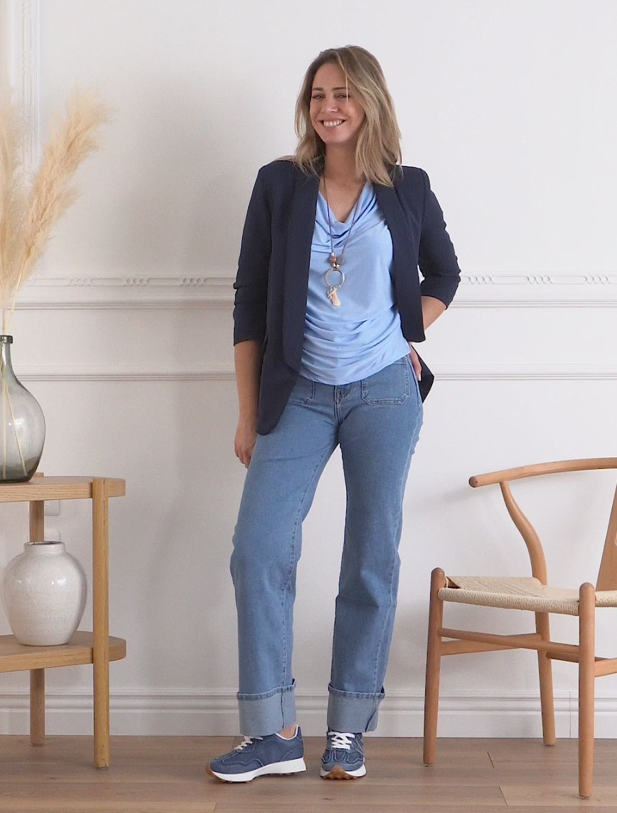 Top fluido con scollo a cascata - Azzurro cielo