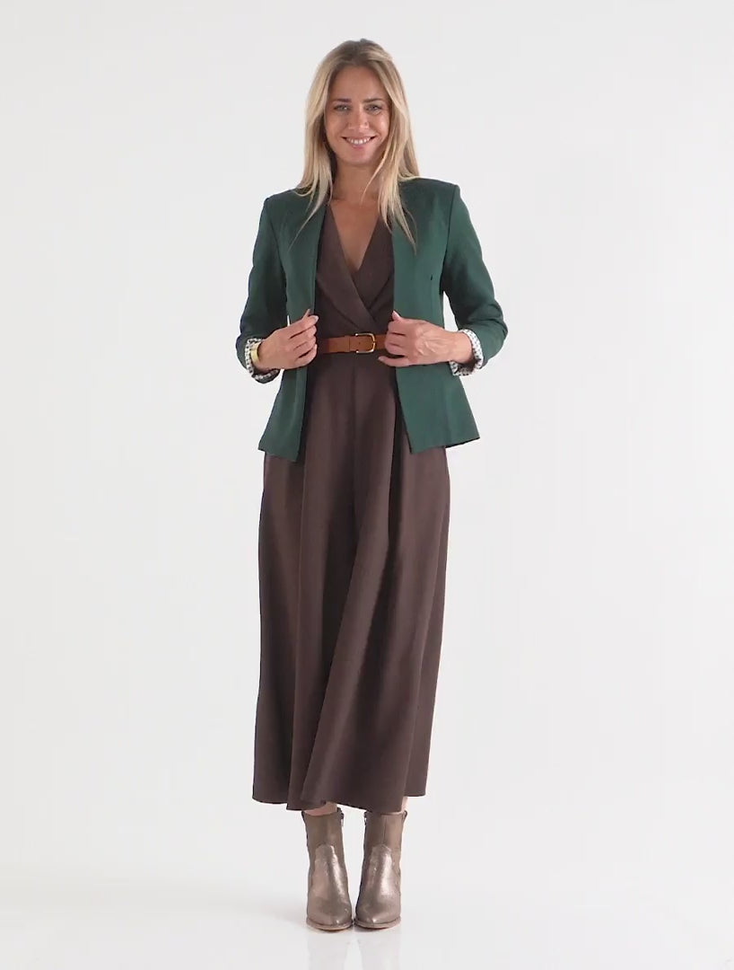 Tuta senza maniche con cintura a tinta unita - Marrone