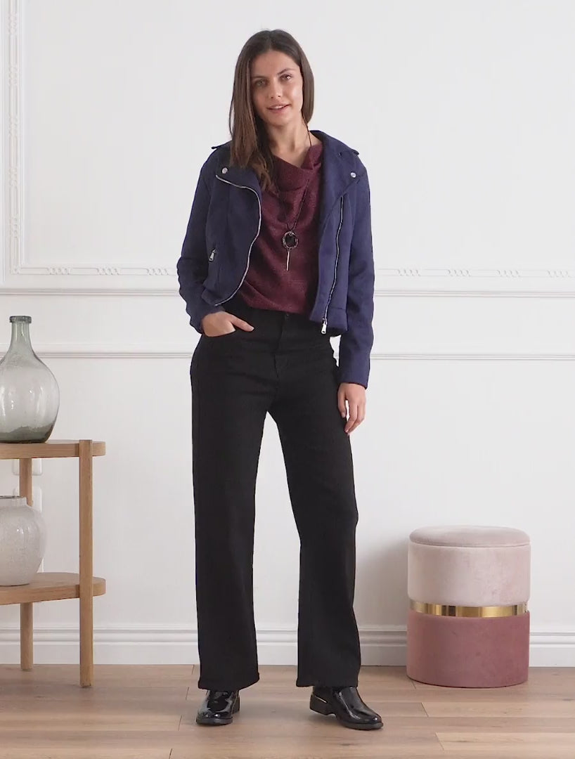 Maglia sottile a righe con collo a cascata - Feccia di vino