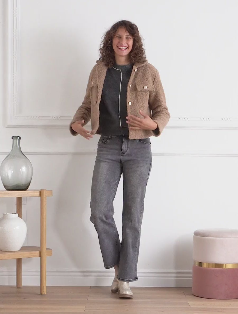 Maglione dritto con collo rotondo e bordino a contrasto. - Grigio