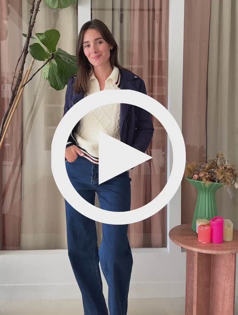 Maglione lavorato a maglia con scollo a V. - Ecrù