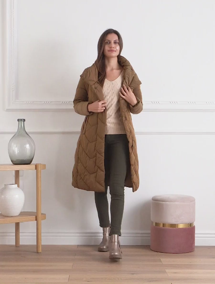 Maglione tinta unita con scollo a V e dettaglio traforato. - Beige