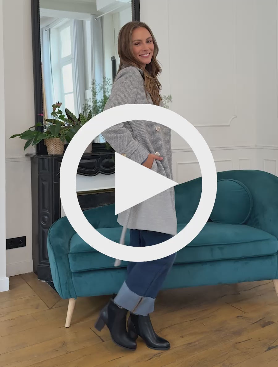 Cappotto dritto doppiopetto con bottoni - Grigio chiaro