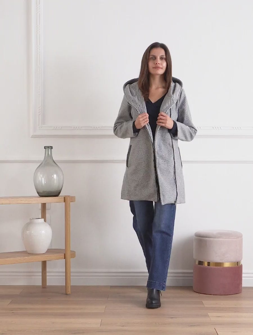 Cappotto con cappuccio e inserti in similpelle - Grigio