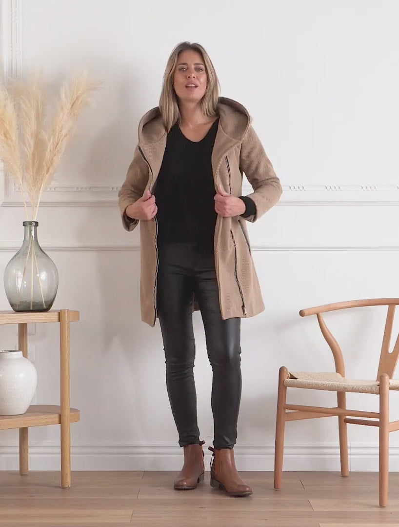 Cappotto con cappuccio e inserti in similpelle - Chameau