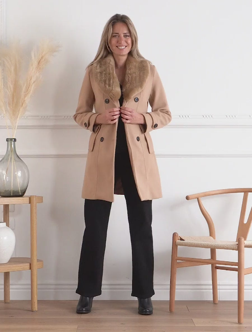 Cappotto con collo in pelliccia sintetica rimovibile - Camello chiaro