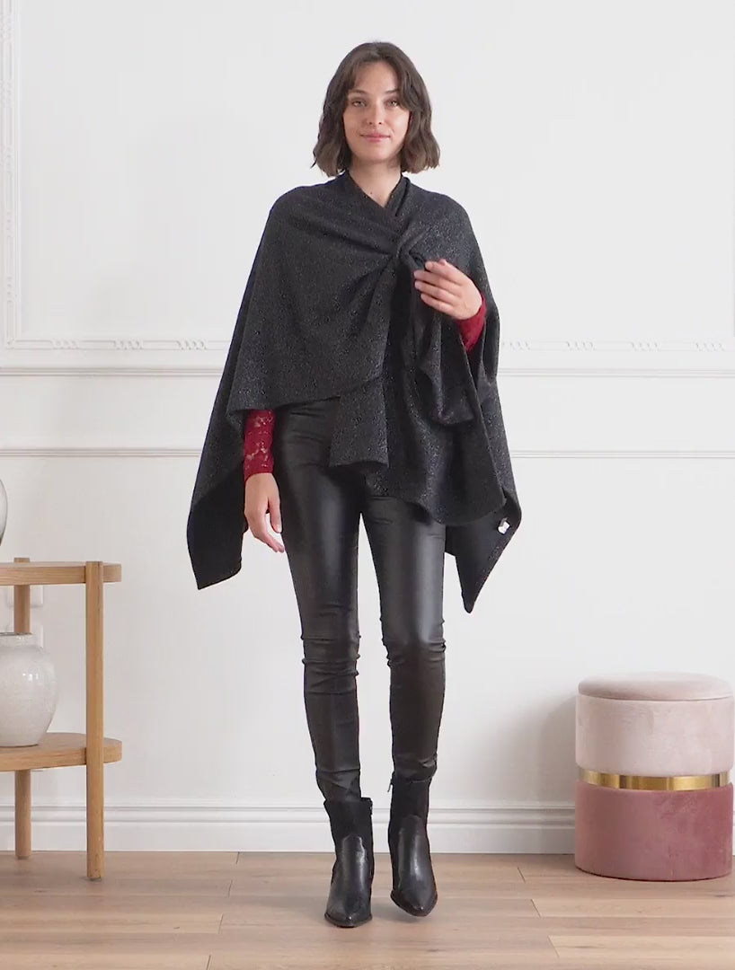 Poncho unito iridescente da annodare - Nero
