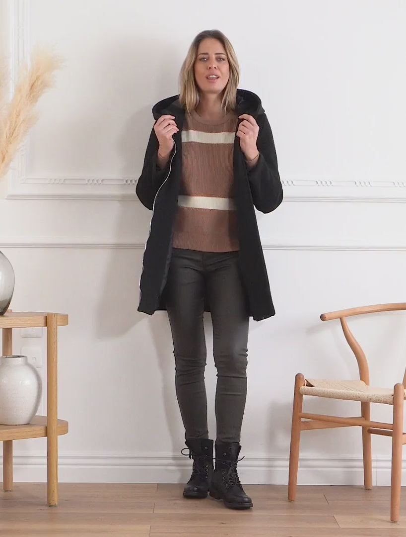Cappotto con cappuccio e inserti in similpelle - Nero