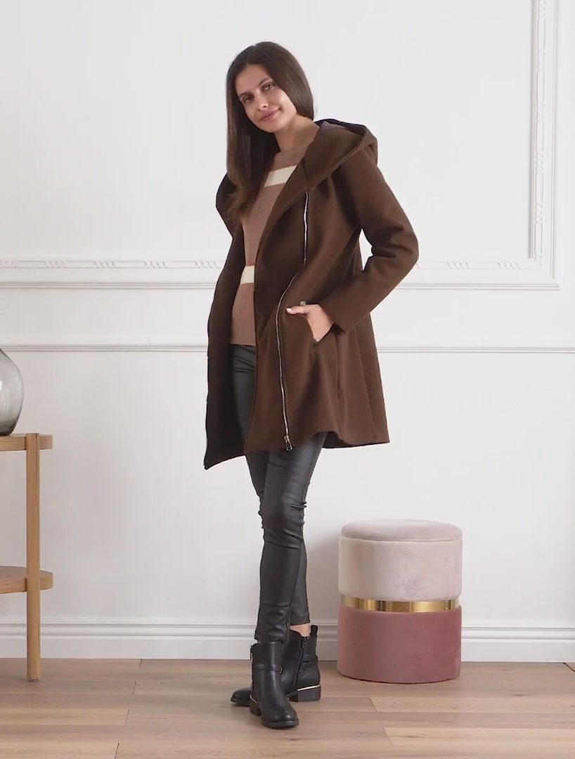 Cappotto con cappuccio e inserti in similpelle - Marrone