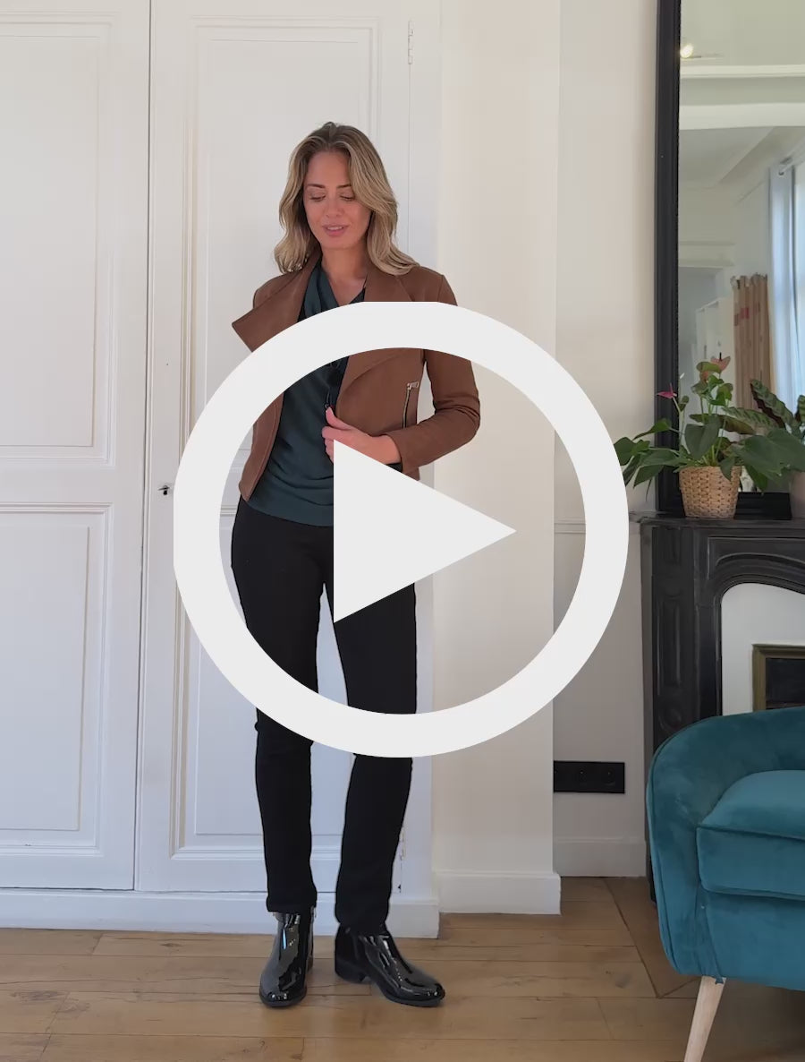 Giacca in camoscio sintetico con tasche decorative con zip - Marrone