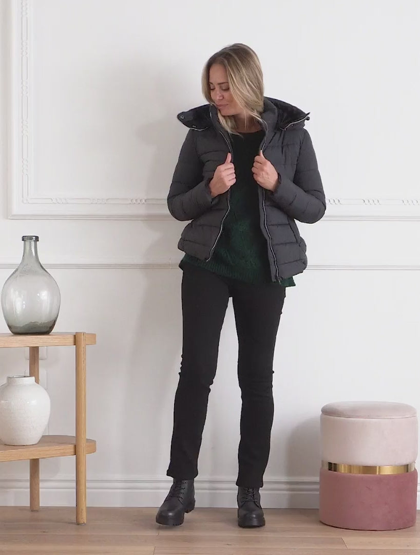 Giubbotto imbottito con cappuccio rimovibile - Nero