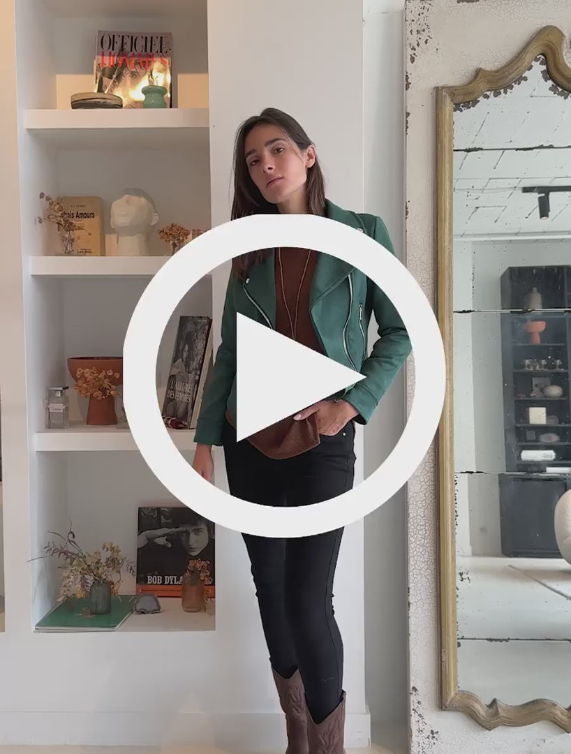 Giacca in suede con chiusura a zip - Verde abete