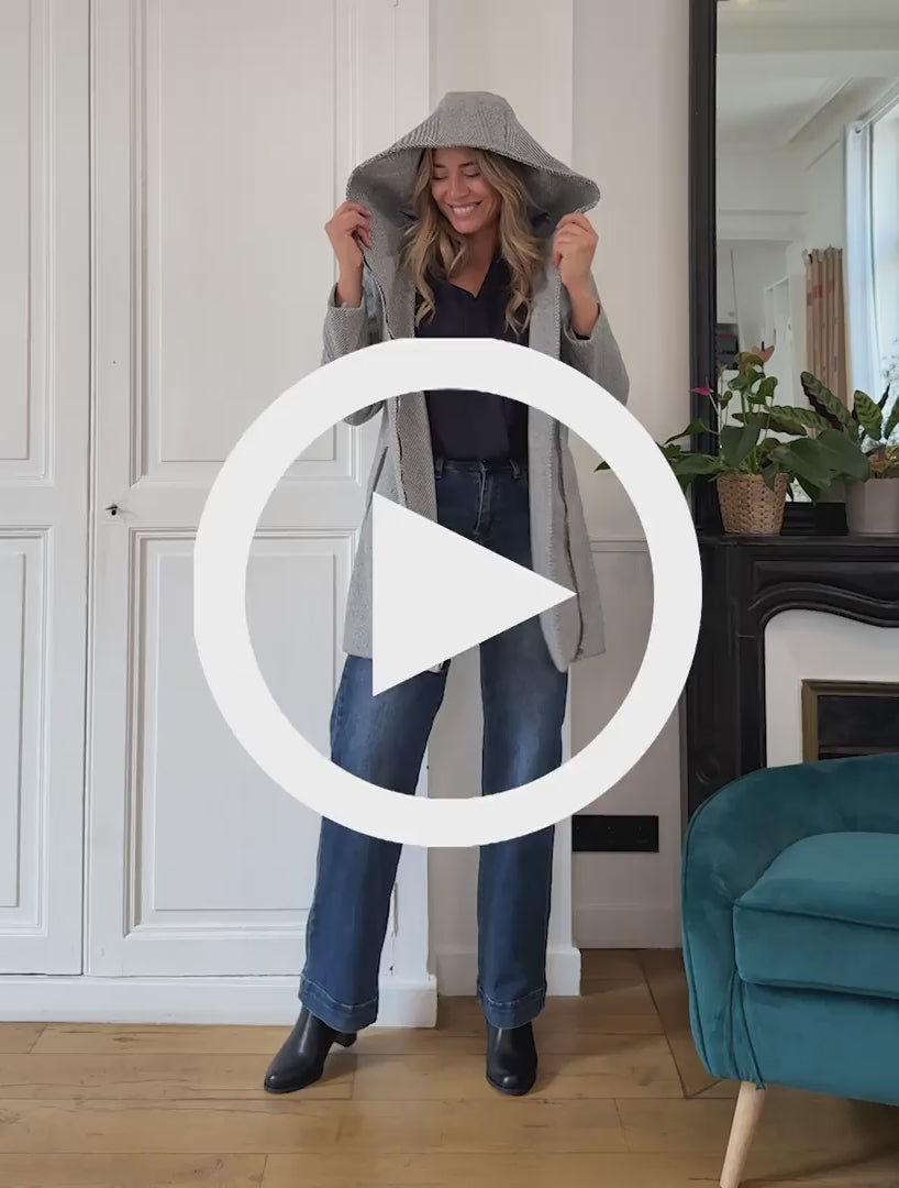 Cappotto con cappuccio e inserti in similpelle - Grigio