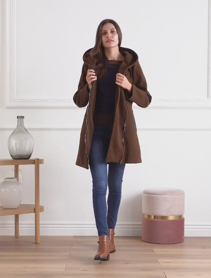Cappotto con cappuccio e inserti in similpelle - Marrone